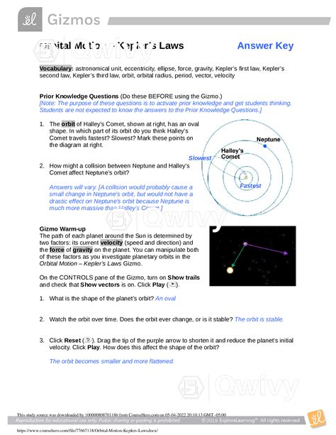 Read Explore Learning Gizmo Orbital Motion Answer Key 2294 PDF Doc